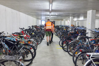 Alle Fahrräder ohne Markierung (erste Bild) dürfen bleiben. Der Rest wird verladen und in die Velohalle beim Bahnhof gebracht.