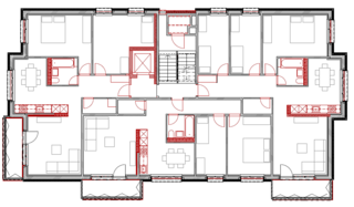 Um das schadstoffhaltige Material zu entfernen, müssen alle Böden rückgebaut werden. Da sich Naphthalin auch in der Bausubstanz ablagern kann, werden danach die Böden und, wo notwendig, teils auch die Decken mit einer Spezialfolie abgedichtet. Bei einer Sanierung von diesem Ausmass drängte sich ein genauer Blick in die Zukunft auf. Nun macht die abl aus der Not eine Tugend: So wird im gleichen Zug die Wohnqualität verbessert sowie die Langlebigkeit des Gebäudes erhöht – natürlich immer mit den Kosten im Blick: Mit neuen Türen, einer Bodenheizung und einer besseren Schalldämmung sowie einem neuen Lift, der neu auf der Höhe der Wohnungseingänge und nicht in den Zwischenetagen hält. So werden die Zugänge zu den Wohnungen barrierefrei.
