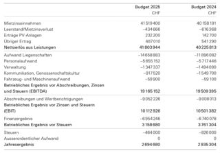 Obwohl die Unterhaltskosten gestiegen sind, bleibt das Jahresergebnis mit 2.7 Millionen Franken konstant. Dies dürfte eine Verzinsung des Genossenschaftskapitals ähnlich wie in den Vorjahren ermöglichen und bestätigt die stabile finanzielle Lage der abl.