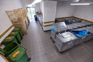 Schön ordentlich stehen sie da, die Behältnisse im Entsorgungsraum der Siedlung Himmelrich 3. Hin und wieder wird hier allerdings Abfall deponiert, der nicht in diese Container gehört und separat entsorgt werden muss.