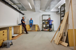 Eine Werkstatt war im Himmelrich 3 nicht von Anfang an vorgesehen und ist der Initiative von Bewohnerinnen und Bewohnern zu verdanken. Schon in den Workshops vor dem Einzug wurden mehrfach eine Velowerkstatt oder ein Bastelraum gewünscht. Es blieben offene Fragen: Wie organisieren sich die Initiantinnen und Initianten? Wo gibts freien Raum? Wer bezahlt das alles? Und wer und wie darf die Werkstatt benutzen? Früh hat sich ein Gründerteam von sechs Personen gebildet, um die Idee voranzutreiben. Neben Boris Macek, Christian Hochstrasser und Christian Vögtli gehören Cédric Eberli, Sepp Habermacher, Sandra Meier und Simon Müller dazu. «Jeder ist mit seinen Bedürfnissen in die Gruppe gekommen», sagt Boris Macek. Um Skier zu wachsen, Fasnachtsmasken zu basteln, einen Camper umzubauen oder Velos zu flicken. Zwölf Räume im weiten Untergrund der Überbauung hat die Gruppe besichtigt – und sich dann für die jetzige Werkstatt mit Wasseranschluss, nahem WC und einer Lüftung entschieden. Eben gerade hat ein Sanitär ein grosses Waschbecken montiert. Der ganze Prozess brauchte Zeit und strapazierte zeitweise die Geduld der Gruppe. «Wir sind alles Macher», sagt Boris Macek. Und Christian Hochstrasser ergänzt: «Wir haben als Team ziemlich gepusht und da sind spannende Dynamiken aufeinandergeprallt, es war für alle eine neue Erfahrung.» Aber letztlich habe die Zusammenarbeit sehr gut geklappt, sind sich die drei einig. Schliesslich ist es alles andere als selbstverständlich, dass eine solche Idee umgesetzt wird.