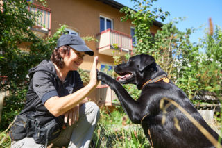Labradorhündin Yuma wedelt aufgeregt mit dem Schwanz. Endlich kann die Suche beginnen. Sie läuft im Zickzack-Kurs zwischen den Häusern der Maihofhalde durch; noch keine Fährte. Dann ein Blick zurück zu ihrer Hundeführerin Mirella Manser, die hinter der Hündin hereilt und ihr wortlos, aber mit klaren Handzeichen die Richtung weist. Weiter gehts.
