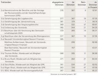 Für Präsident Marcel Budmiger und Geschäftsleiter Armando Wigger war diese GV eine Premiere. Das passte zu den Hinweisen auf die vielen personellen Wechsel im Geschäftsjahr 2023, vor allem in der Führungsetage. «Der Betrieb lief indessen sehr stabil», versicherte Wigger, und erläuterte die ausnahmslos positiven Zahlen: seit 2018 zehn Prozent mehr Wohnungen, sechs Prozent oder 132 Wohnungen mehr im Jahr 2023. Seit 2018 ganze 25 Prozent mehr Mitglieder; bald dürfte die 15000er-Schwelle erreicht sein. Auch die Bilanzsumme erhöhte sich im Berichtsjahr gegenüber dem Vorjahr um sechs Prozent auf 660 Millionen Franken. Sämtliche traktandierten Geschäfte das Jahr 2023 betreffend wurden von den Stimmberechtigten mit grossem Mehr gutgeheissen.