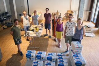 Am Verteiltag rüsten die Vereinsmitglieder die Einkäufe der Himmelrich-Foodcoop-Einkaufsgemeinschaft und die Bestellungen werden abgeholt.