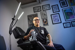 Sein Stil ist geprägt von der Chicano-Kultur und zieht Kundinnen und Kunden aus ganz Europa an.
