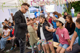 Nach und nach füllte sich der Platz, das Stimmengewirr wuchs, Kinder flitzten zwischen den Reihen hindurch, Nachbar*innen plauderten angeregt – bis plötzlich Ruhe einkehrte: Mit dem ersten Schritt auf die Bühne zog Daniel Kalman alle Blicke auf sich. Mit seinem charmanten Auftreten und einem verblüffenden Repertoire fesselte Kalman Jung und Alt. Geschickt zauberte er Bälle, Zauberstäbe – ja sogar Geldstücke aus den Ohren der kleinen Zuschauer*innen. Besonders mutige Kinder durften selbst auf die Bühne, um ihm bei seinen Tricks zu assistieren.