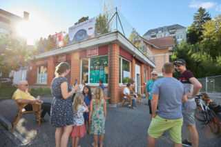 Sie werden ihre volle Reife nicht mehr erleben – die wenigen Birnen, die an der oberen Bernstrasse an einem knorrigen Baum hängen. Umgeben von den sich türmenden Schuttbergen stehen sie für eine historische Zeit, die sich hier dem Ende neigt. Das stimmt etwas melancholisch. Auch deshalb, weil die Birnen bestimmt geschmeckt hätten. An diesem heissen Sommerabend Ende August gilt es indessen auf das Neue anzustossen: Das Eröffnungsfest des B102, dem neuen Quartierraum an der Bernstrasse 102, kündigt den Beginn einer Zeit an, in der es entlang der Bernstrasse Platz gibt, um sich zu treffen.