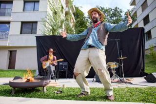 Zum Glück hielten sich die anwesenden Kinder mit gutem Rat für die unbeholfenen Cowboys nicht zurück. Es war alles sehr stimmig und lustig, auch die Erwachsenen lachten mit. Die Geschichten lebten vom absurden Humor und die Musik vom lieblichen Trashfaktor. Der Zoo nahm zwar kein gutes Ende, dafür gabs Cowboy-Bohnen frisch aus dem Feuer für alle.