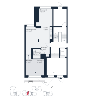 Zwei Grundrissbeispiele der neun Ateliers an der Bernstrasse.