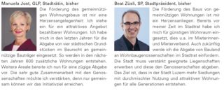 Den schönen Worten im Wahlkampf müssen konkrete Taten folgen. Wie zum Beispiel mit deiner klaren Haltung bei Wohnrauminitiativen. Auch die Mitgliedschaft in einer Genossenschaft, in unserem Fall bei der abl, ist ein Tatbeweis. Entsprechend weisen wir an dieser Stelle explizit auf die Exklusiv-Kandidatinnen und -Kandidaten hin, die Mitglied der abl sind. Es sind dies, in alphabetischer Reihenfolge: Franziska Bitzi, Judith Dörflinger, Jona Studhalter und Beat Züsli.