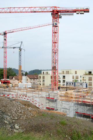 Bei jenem Bau, der am wenigsten weit fortgeschritten ist, werden im Erdgeschoss derzeit die Bodenplatten betoniert. Beim mittleren Bau werden die Wände über dem Erdgeschoss eingezogen und beim am weitesten fortgeschrittenen die Decke über dem Erdgeschoss erstellt (Stand: Mitte Juni 2021). Die Rohbauarbeiten vom letztgenannten Bau werden voraussichtlich Ende des Jahres 2021 abgeschlossen. Anschliessend wird mit dem Fassaden- und Innenausbau gestartet.