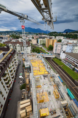 Die sehr engen Platzverhältnisse in diesem Gebiet der Luzerner Neustadt sind während der gesamten Bauzeit eine besondere Herausforderung. Südlich ist das Areal begrenzt von den SBB-Geleisen und dem nötigen Sicherheitsabstand, nördlich muss für das Gewerbe stets der Durchgang zum Innenhof der schon bestehenden Siedlung Himmelrich 3 gewährleistet sein. Deswegen gibt es kaum Lagerflächen, was die Baustellenlogistik zusätzlich kniffliger macht. Auch wenn es noch eine ganze Weile dauert, bis an dieser Stelle des Himmelrich 3 Leben einkehren wird: Die Wohnungen und die zwei Kindergarten-Räume im Erdgeschoss des Hauses an der Claridenstrasse 3 dürften im Sommer 2023 rechtzeitig zum Schuljahrstart 2023/24 bezugsbereit sein. bas