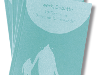 Im Debattenbuch «10 Texte zum Bauen im Klimawandel» der Architekturzeitschrift «werk, bauen + wohnen» sind vielfältige Stimmen versammelt. Allen gemeinsam ist: Sie zeigen die Zielkonflikte beim Bauen während des Klimawandels auf, aber auch Möglichkeiten für eine zukunftsweisende Architektur. So liest man im Buch vom Streitgespräch der beiden Architekturkritiker Axel Simon und Tibor Joanelly zu deren unterschiedlichen Einschätzung des neuen SRF-Medienzentrums in Zürich. ETH-Professorin Elli Mosayebi schreibt über Energiefragen als formbestimmende Kraft beim Häuserbauen, der alt Kantonsbaumeister von St. Gallen, Werner Binotto, zum Lowtech-Ansatz in Schulbauten, und Annette Aumann vom Amt für Hochbauten Zürich über deren Weg zu Netto-Null.