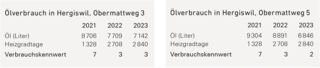 Nun ist bereits ein weiterer Winter vergangen und es liegen genügend Vergleichszahlen vor, um ein erstes Fazit zu ziehen. Dazu analysierten wir die Siedlung Hochrüti, die mit Erdgas heizt, und die Siedlung am Obermattweg 3 und 5, die noch Öl verwendet.