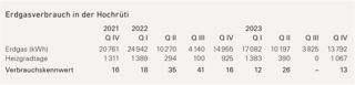 Die reinen Zahlen des Erdgasverbrauchs (siehe Tabelle oben) scheinen je nach Quartal zurückzugehen, doch eine eindeutige Tendenz ist nicht auszumachen. Nimmt man jedoch wie vorhin beschrieben die Heizgradtage für den Vergleich zu Hilfe, sieht man, dass sich der Verbrauch auch im Verhältnis zu den Heizgradtagen eindeutig nach unten bewegt: vom Verbrauchskennwert 35 im zweiten Quartal 2022, wo die Heizkurve noch nicht auf 21 Grad begrenzt wurde, zu 26 im vergleichbaren und temperaturtechnisch von der abl begrenzten zweiten Quartal 2023.