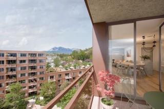 Tolle Aussichten im ewl-Areal: Wohnen mit Blick auf Rigi, Gemeinschaftsterrasse und grünem Innenhof.