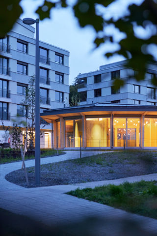 Seit Mitte Oktober reihen sich die Schlüsselübergaben nahtlos aneinander. Damit die neuen Nachbarinnen und Nachbarn nicht bloss zum Notnagel bei fehlenden Kochzutaten werden, bietet der Pavillon bald ausreichend Platz für Siedlungsfeste und Nachbarschaftstreffen. Die Einweihung ist für Frühling 2024 geplant.