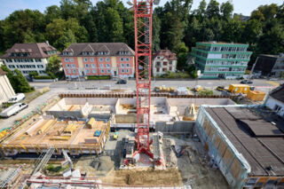 Stockwerk um Stockwerk nimmt das Areal Industriestrasse Gestalt an. Neben attraktiven Wohnungen entstehen hier auch Räume für Gewerbe, Begegnung und gemeinsames Leben.