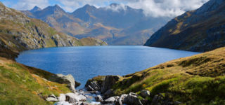 Der Lago di Lucendro ist einer der fünf Seen bei der Wanderung am Gothardpass im August.